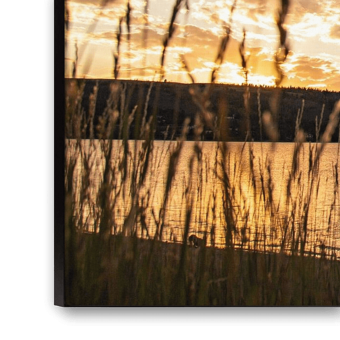 The area in Colorado surrounding Rocky Mountain National Park is almost as spectacular as the park itself. Lakes are everywhere here, a perfect place to enjoy the spectacular sunset. The clumps of grass in the foreground give the photo a beautiful effect, precisely surrounding the sunbeams shining against the clouds. What a magical evening.