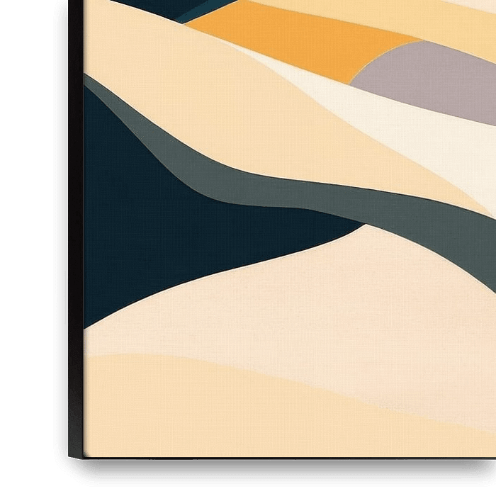 Immerse yourself in a harmonious world of colour, where gentle waves of warm earth tones and a radiant sunrise spread inviting tranquillity. This abstract landscape brings a sense of peace and inspiration, perfect for the living room to create a relaxed atmosphere and encourage conversation.