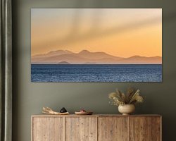 A beautiful deep orange sunset at Lake Taupo, on New Zealand's North Island. Lake Taupo is the result of volcanic activity: it is actually a flooded caldera of a volcano. The mountains of Tongariro National Park can be seen in the background.