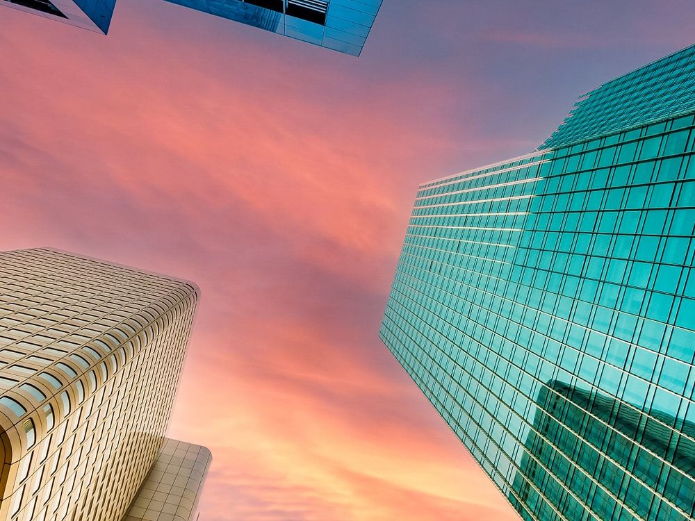 Frankfurt skyline with sunset