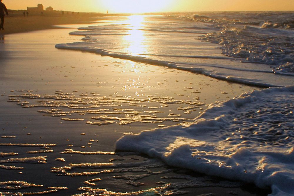 Walk on the beach at sunset.