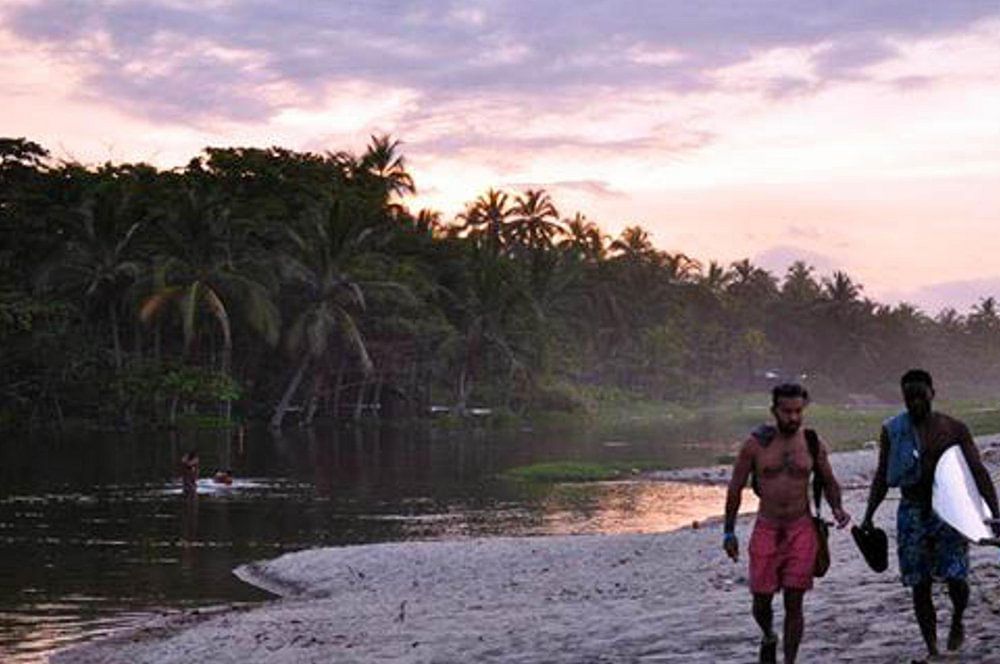 Colombian friends on their way to a sunset surfing session.