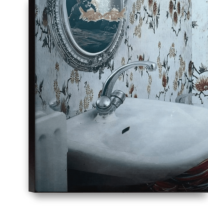 This fascinating image manipulation shows a mermaid in a dilapidated bathroom, surrounded by swimming goldfish. It is an artwork that fits perfectly into an interior that could use a touch of fantasy and surreal flair.