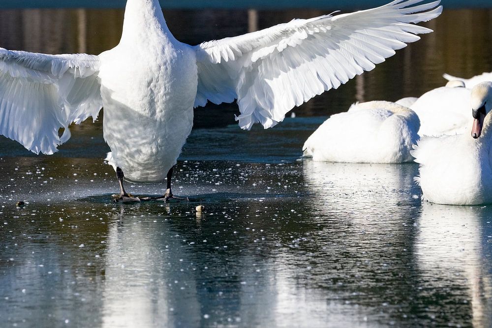 Buy this bird art Swan dance on the ice by Andreas Müller on canvas, ArtFrame, poster and wallpaper, printed on demand in high quality.