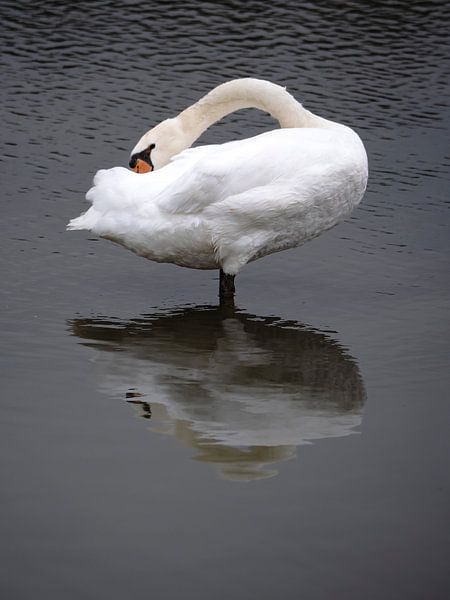 This swan sees its own reflection.