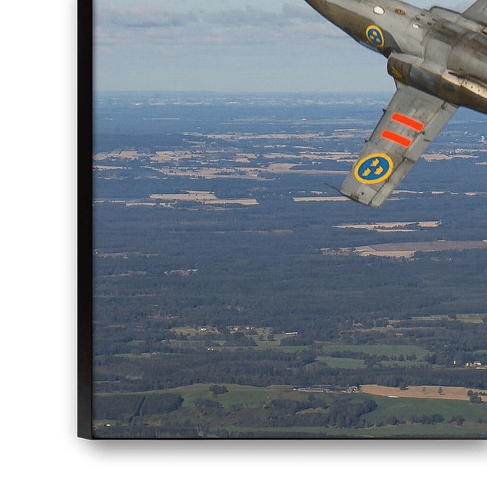 Two Swedish Air Force Sk60B training jets perform a 'climb and break' in formation during a training flight.