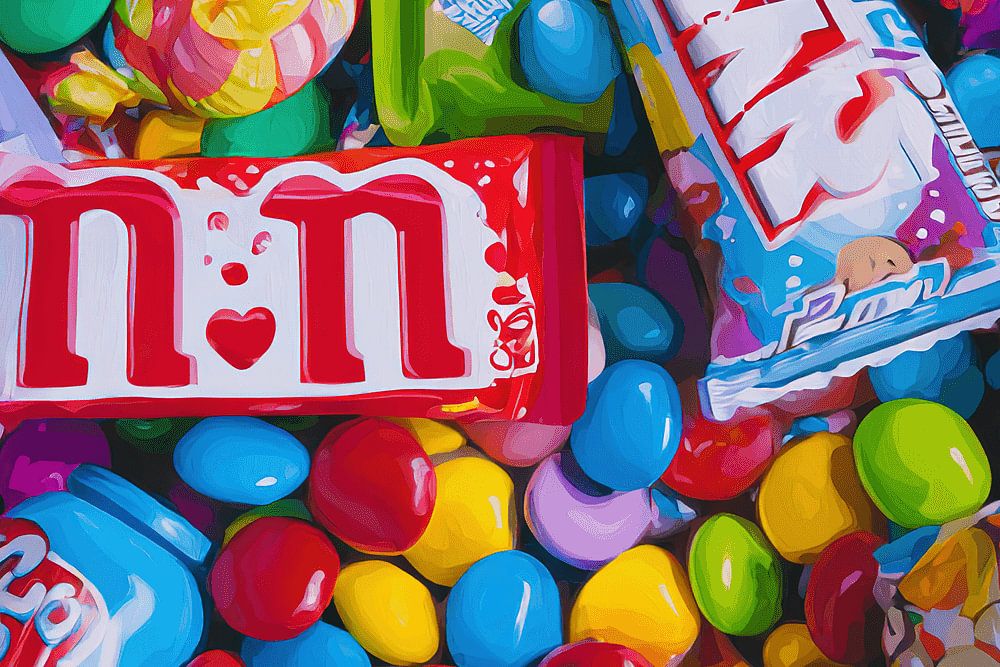 A burst of colors and textures brings to life a playful world of candies, chocolates, and sweets, celebrating joy and indulgence