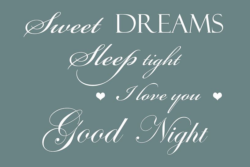Sweet dreams sleep tight I love you good night. The background color is green, the letters are white. Text on canvas or other material.