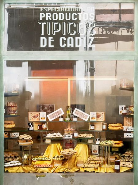 Behind the glass, a shop window full of sweet delicacies beckons, richly and temptingly displayed. In the soft reflection of the window, you can see the outside world watching. An image that inevitably makes your mouth water.