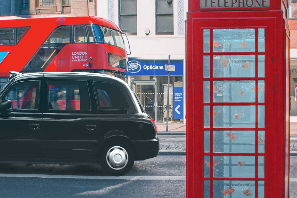 Symbolic Imaging of London: Telephone booths as Aquariums for Climate Awareness by Elianne van Turennout
