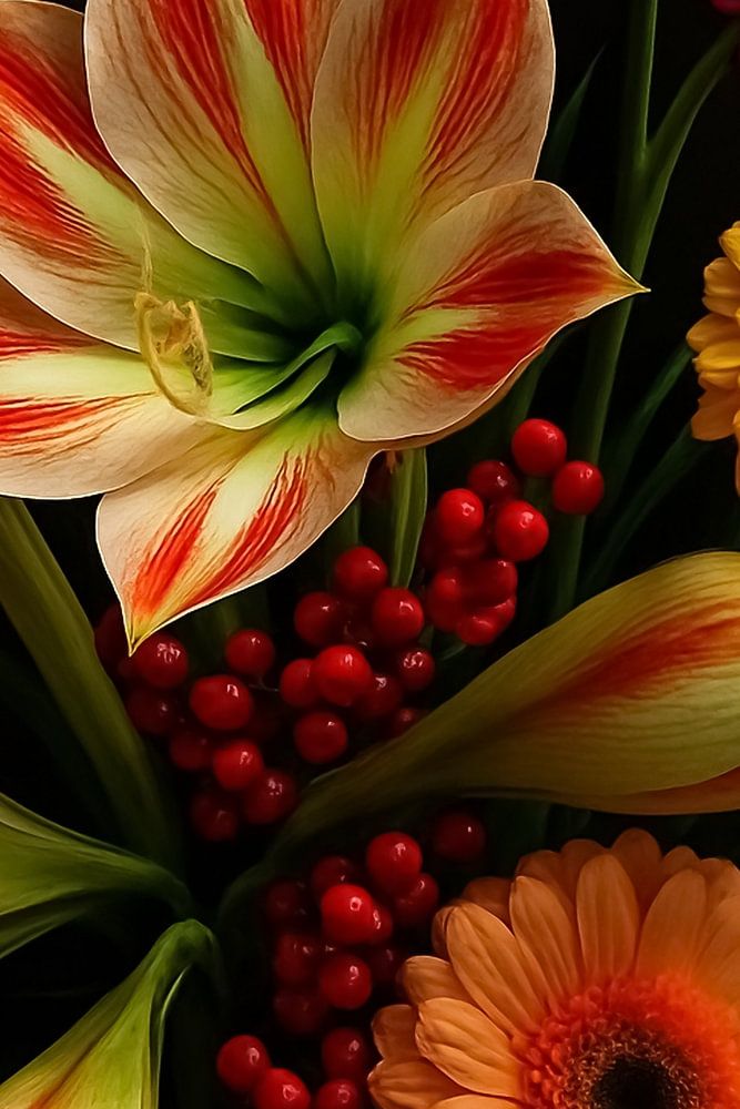 This work is a vibrant interplay of warm colourful tones and elegant shapes, powerfully lit against a dark background.