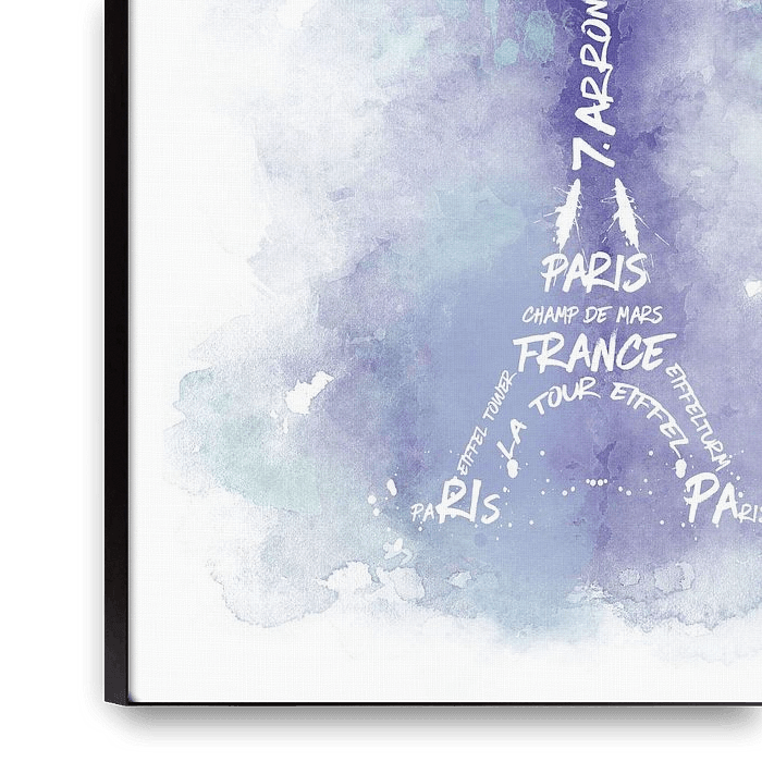 Buy this painting TEXT ART Watercolor Eiffel Tower | violet & turquoise by Melanie Viola as a reproduction on canvas, ArtFrame, poster and wallpaper, printed on demand in high quality.