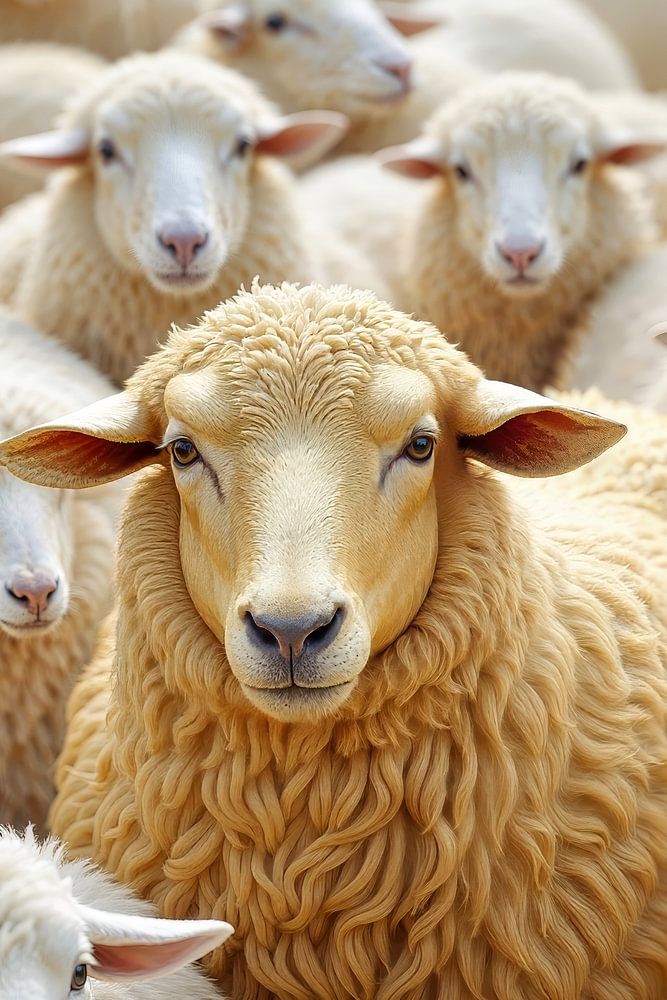 Amidst a herd of countless white sheep, one stands apart: the golden sheep. Its coat shines like fire under the sun, a symbol of individuality, courage, and independence. While the others remain in rigid unity, this animal stands proud, free, and unbroken – created not to follow, but to walk its own path.