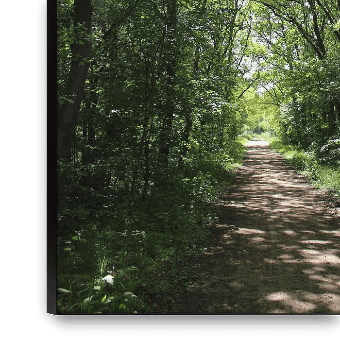 The photo takes you along as you walk the path through the forest and the sun shines through the bright green trees, on a beautiful summer day. Just letting you remember the beautiful moments again.