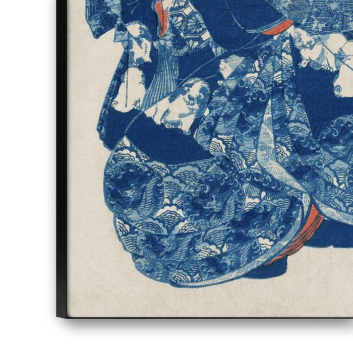 Tamaya uchi Usugumo by Utagawa Kuniyoshi (1753-1806), translated The Courtesan Hanao of Ogi-ya, a traditional Japanese ukiyo-e style illustration of a well-dressed courtesan woman with elaborate hair ornaments sitting with an attendant. Original from Library of Congress.