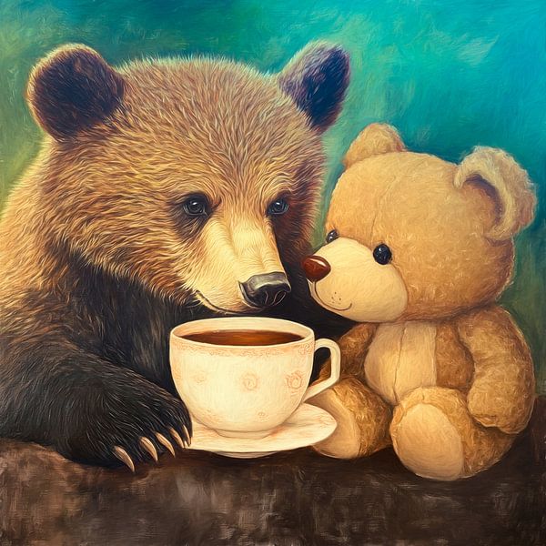 Buy this digital art artwork Tea for two bears by Jutta Maria Pusl as a reproduction on canvas, ArtFrame, poster and wallpaper, printed on demand in high quality.