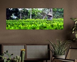 Buy this landscape artwork Tea plantation Indonesia by Giovanni della Primavera on canvas, ArtFrame, poster and wallpaper, printed on demand in high quality.
