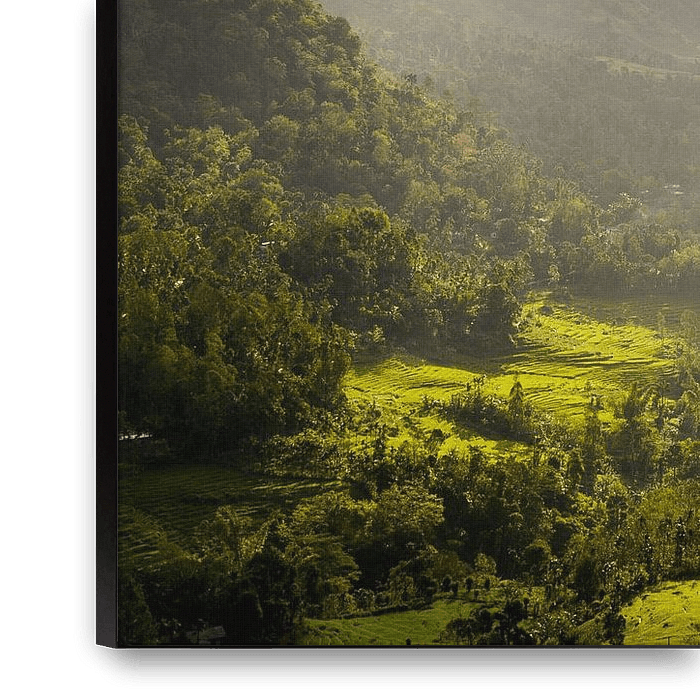 Buy this landscape artwork Tea plantations Sri Lanka in sunbeams by Jille Zuidema on canvas, ArtFrame, poster and wallpaper, printed on demand in high quality.