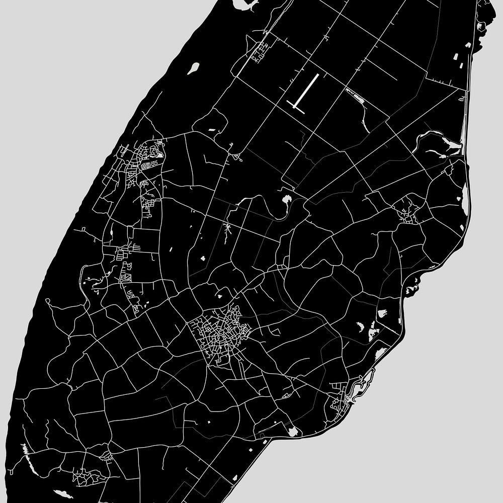 This minimalist line drawing of Texel is very accurately illustrated by Ricardo Bouman. Ricardo is a graphic designer & artistic cartographer from Zoetermeer. He has digitally illustrated the map line by line in vectors, so that the map is available in any desired format.