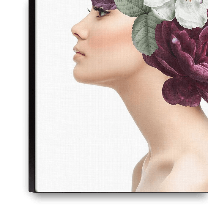 Portrait of a woman with a hairstyle of flowers.
