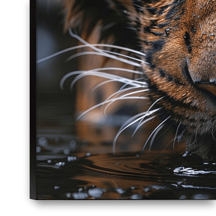'The Awakening Force' is a work that captures the majestic and intense gaze of a tiger, subtly enveloped in the serene beauty of the moment. You can see the essence of power and grace captured in the image, as water droplets glide gracefully along the animal's face, creating a rare and intimate image.