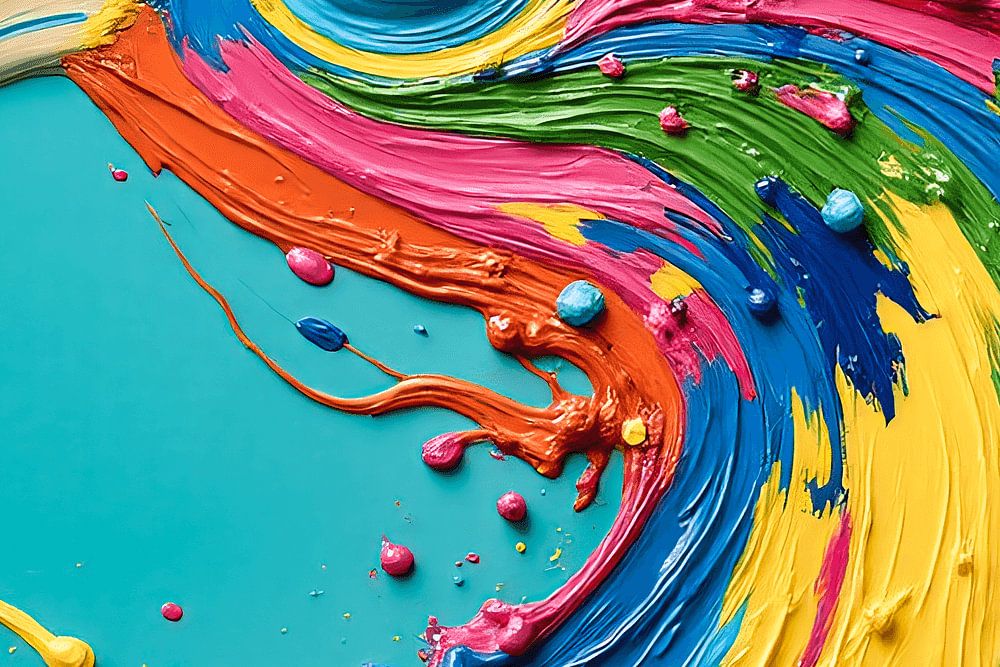 An artwork with paint splatters exudes spontaneity and energy. Using paint splatters gives a sense of movement and freedom, where the paint seems to dance across the canvas. This technique, often associated with abstract art, invites the viewer to lose themselves in the colours and shapes without being attached to any particular meaning or interpretation. The random patterns created by the splashes create a unique visual experience, capturing the power of the moment. Each detail seems to be part of a larger whole, merging chaos and harmony. The variation in colour, shape and intensity gives the work a dynamism that can feel different every time you look at it. The result is a work of art that not only attracts attention but also conveys a sense of freedom and expression, without being able to be captured in a single narrative.