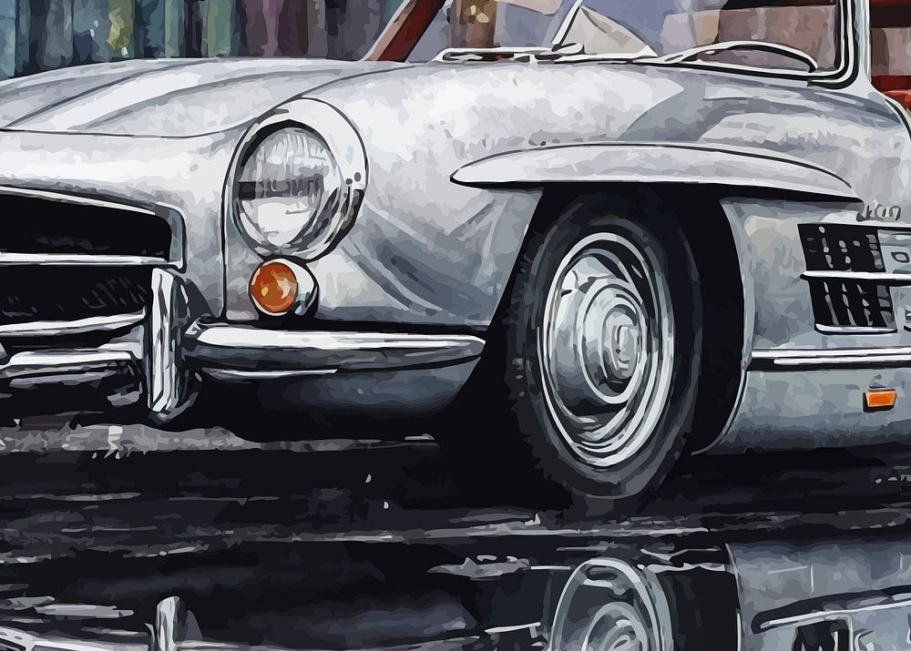 The classic 1964 Mercedes-Benz 300SL Gullwing in gleaming silver stands as an icon against a stunning European cityscape, its sculpted body reflecting elegantly on the ground. Powered by a 3.0L inline-six engine with mechanical fuel injection, it was a marvel of engineering and performance. With its legendary upward-opening doors, sleek aerodynamics, and timeless sophistication, the 300SL remains a symbol of automotive excellence and racing heritage.