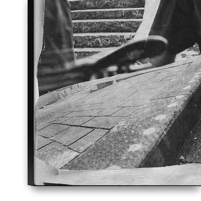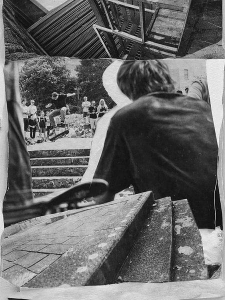 The Drop captures a moment of tension, movement and anticipation. In this layered collage, skateboarding action is combined with an almost cinematic perspective, in which the viewer feels like both a spectator and a participant. The various layers of imagery – from the rough steps in the foreground to the action in the background –…