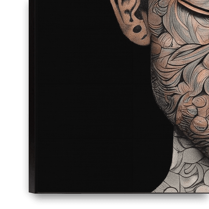In the vibrant realm of artistic imagination and humour, "The Enchanted Thinker" brings out a touch of mischief and mystery. This abstract digital painting tells the story of a young man whose face almost resembles a tattooed masterpiece. With semi-visible wavy curls and beautiful brown-orange hues, this artwork invites…