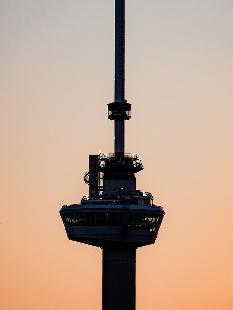 Rotterdam has many icons. One of the most visible icons is, of course, the Euromast. This photo was taken during a sunset in the summer of 2023. The silhouette of the tower stands out beautifully against the orange sky, as day slowly turns to night.