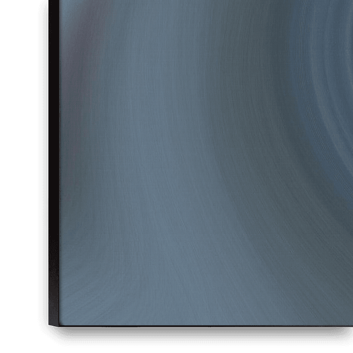 A whirl of lines in shades of grey-blue that draw your eye to the centre of the artwork, like a whirlpool or the eye of a hurricane.