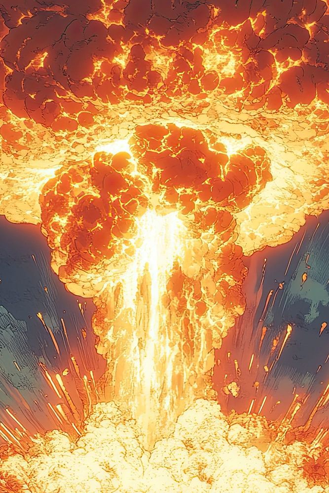 A lone car speeds down a desolate road as a massive explosion consumes the horizon. This cinematic masterpiece captures the raw intensity of destruction, juxtaposed with the eerie calm of a single vehicle’s journey through chaos. The fiery eruption illuminates the scene with breathtaking detail, evoking themes of resilience and the human instinct to escape against all odds. A visual narrative of adrenaline and despair wrapped in apocalyptic beauty.