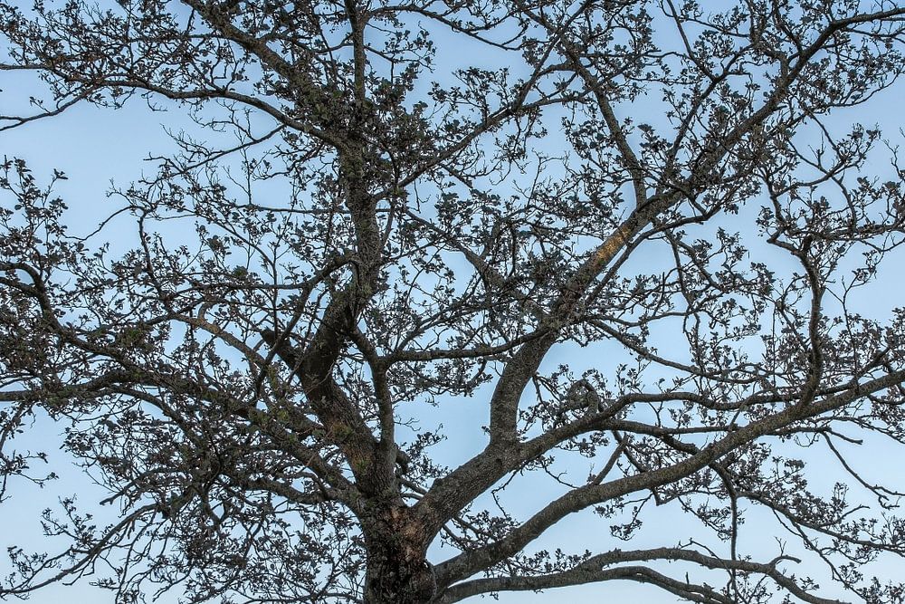 The Frisian village of Westhem in the early summer evening light with a not yet fully grown tree in the foreground for perspective/