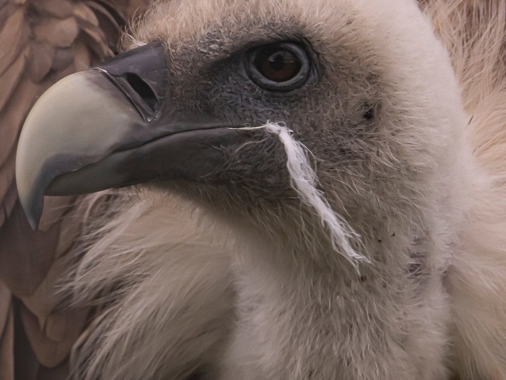 The Griffon Vulture with its beautiful almost caressable neck also exudes power. And then that innocent downy feather in its beak also looks cute again.