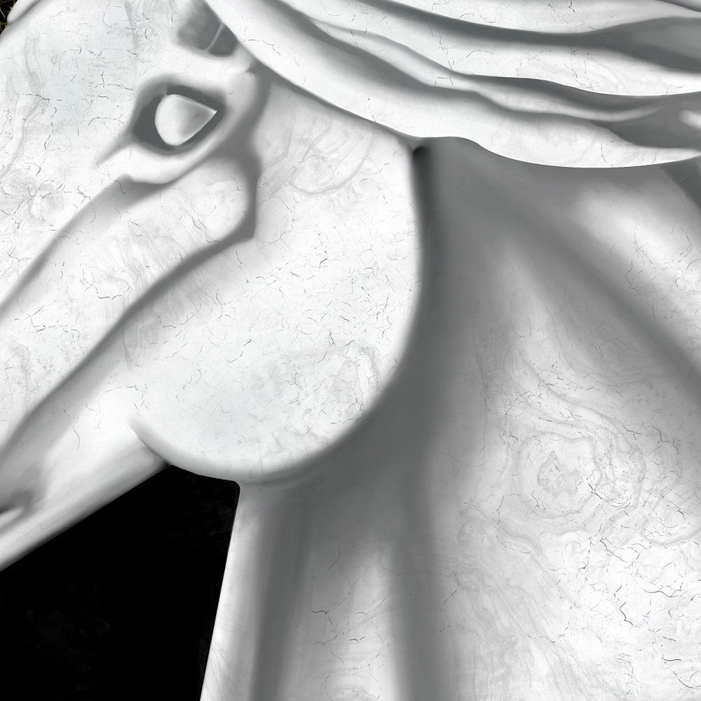 There are two types of these marble works. In this one the horse is white and the background black and in the other the horse is black and the background white. I also jokingly call them "the inverted twins". I love marble and its allure very much. Horses exude a kind of gracefulness that actually belongs to the marble stone type. Whether they are in a pose that radiates tranquility or in a pose where horses are wildly sculpted, I always look at them with admiration. I also have great admiration for the sculptor who can turn a rough stone into something beautiful. I also mention the marble halls, no matter where, they have an elite atmosphere. And so I hope that through 1 or both of these works you will be able to bring an elite atmosphere into your home.