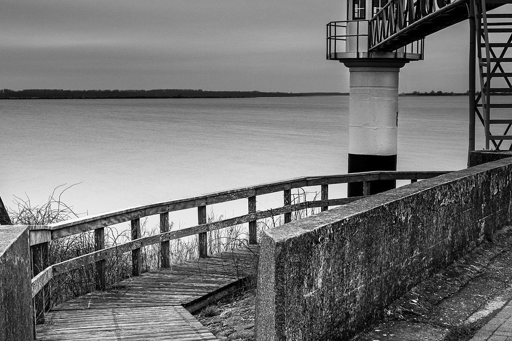 Serene silence at the lighthouse near the little harbor of Oostmahorn (Esonstad) located in the Lauwersmeer on the border of the provinces of Groningen and Friesland. Execution in black and white. This picture was taken with a FujiFilm X-T3 XF 18-55 lens during blue hour on a cloudy winter evening in 2022