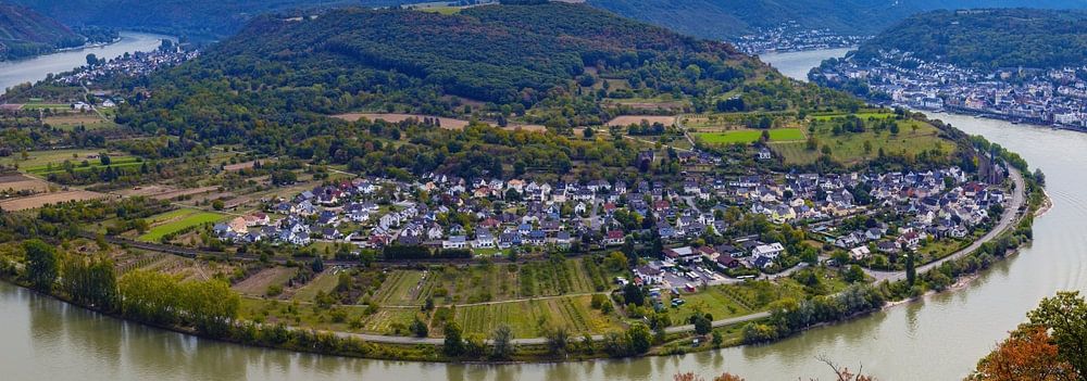 At 1232 kilometres, the Rhine is one of Europe's longest rivers. For the most part, the Rhine runs through Germany and the middle section which flows past many castles and villages through the Rhine valley is the most well known tourist area. Here, from the spot Gedeonseck near Boppard, we see a beautiful view of the loop of the river.