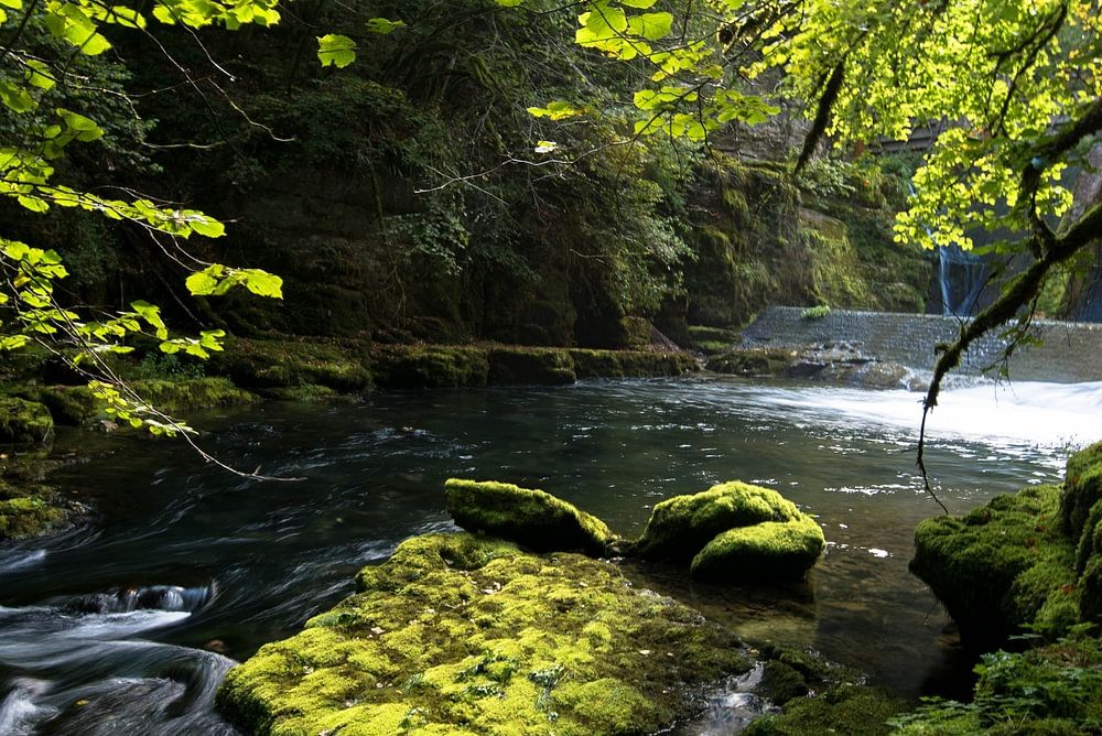 Beautiful river Lou shortly after its source in the Doubs near Ouhan
