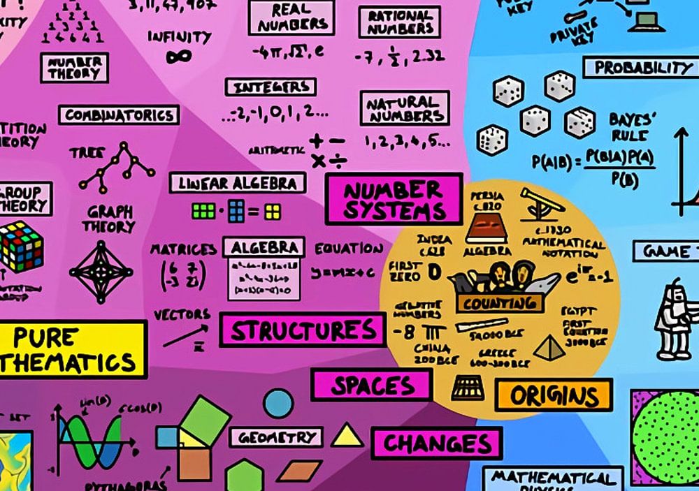 Buy this illustration The Map of Mathematics by Maria Blair on canvas, ArtFrame, poster and wallpaper, printed on demand in high quality.