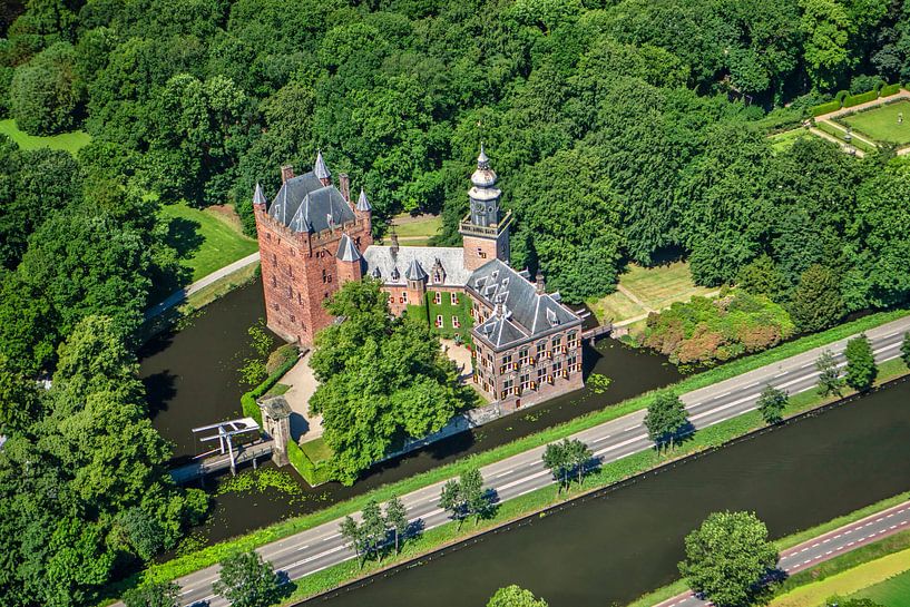 The Netherlands, Breukelen, Castle called Nyenrode along the river Vecht. Location of Nyenrode Business University. Aerial view.