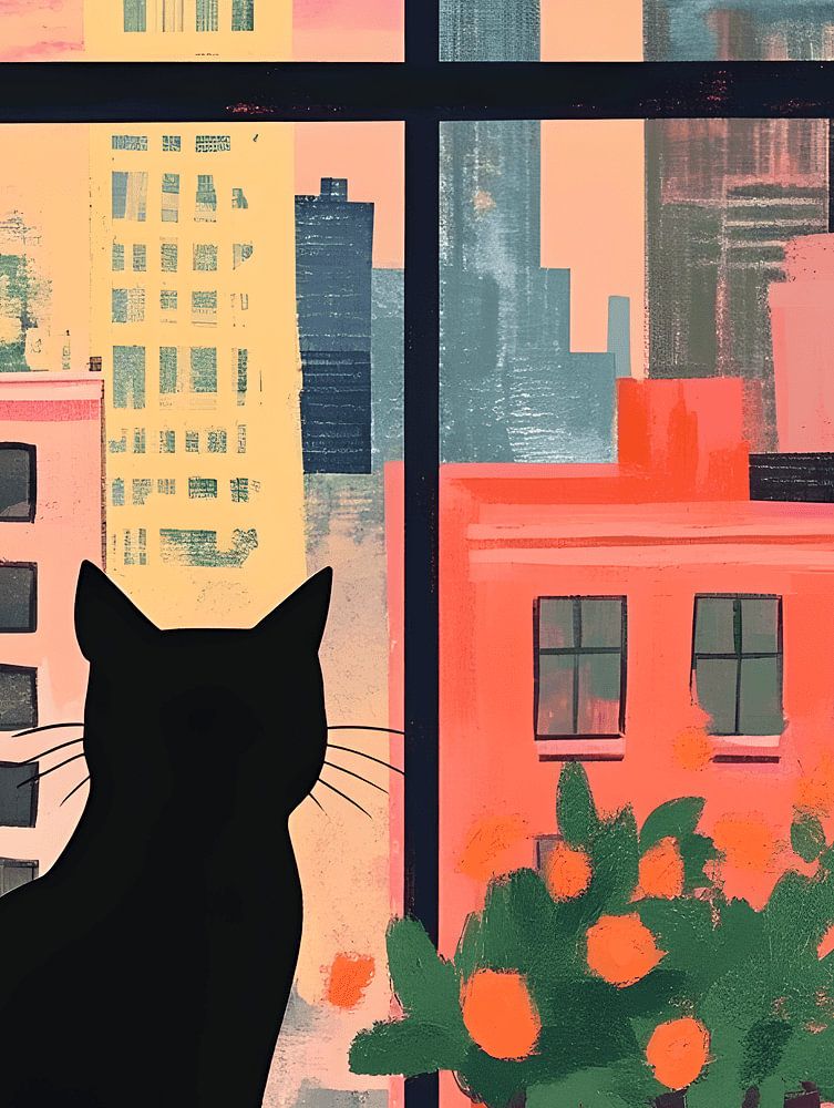 In this artwork, the one Cat in the City of New York is brought to life in a mix of warm colours and tones, which blend beautifully and evoke the warm atmosphere.