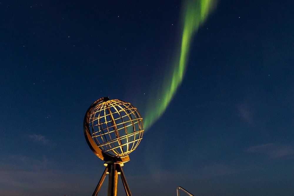 How special to see the northern lights at the very tip of Europe. The dancing aurora above the North Cape monument in Norway.