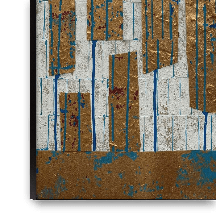 Buy this abstract artwork The Power of Contrast: Urban Wabi-Sabi in Gold and Concrete by Studio Pieternel on canvas, ArtFrame, poster and wallpaper, printed on demand in high quality.