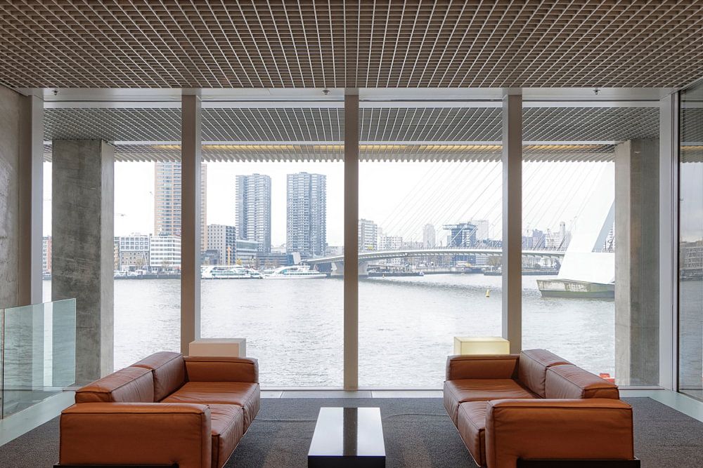 De Rotterdam is a building on Wilhelminapier in Rotterdam designed by Rem Koolhaas's Office for Metropolitan Architecture. The complex stands between the Toren op Zuid and Cruise Terminal Rotterdam and will be completed at the end of 2013; on 21 November 2013 the largest user, the City of Rotterdam, received the key. The design offers space for offices, a hotel and apartments. The 44 floors have a total surface area of approximately 160,000 m², making it one of the largest buildings in the Netherlands.