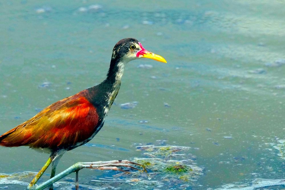 The Jacana in Suriname , called Kepanki, is a common colourful and noisy bird especially during flyaways.