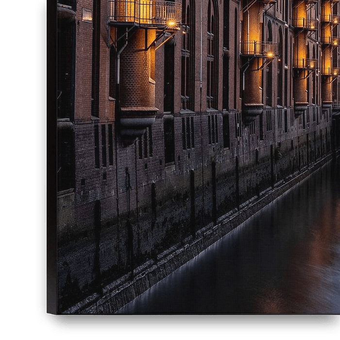 Long exposure of the Speicherstadt in Hamburg in the evening light.