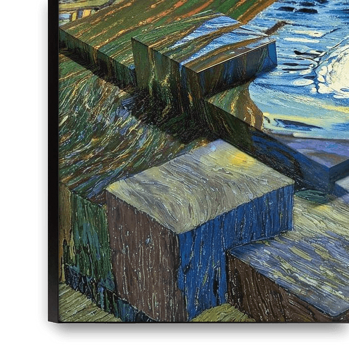 Buy this abstract artwork The Starry Night in 3D Blocks - Modern Remix of a Classic by Arjen Roos on canvas, ArtFrame, poster and wallpaper, printed on demand in high quality.