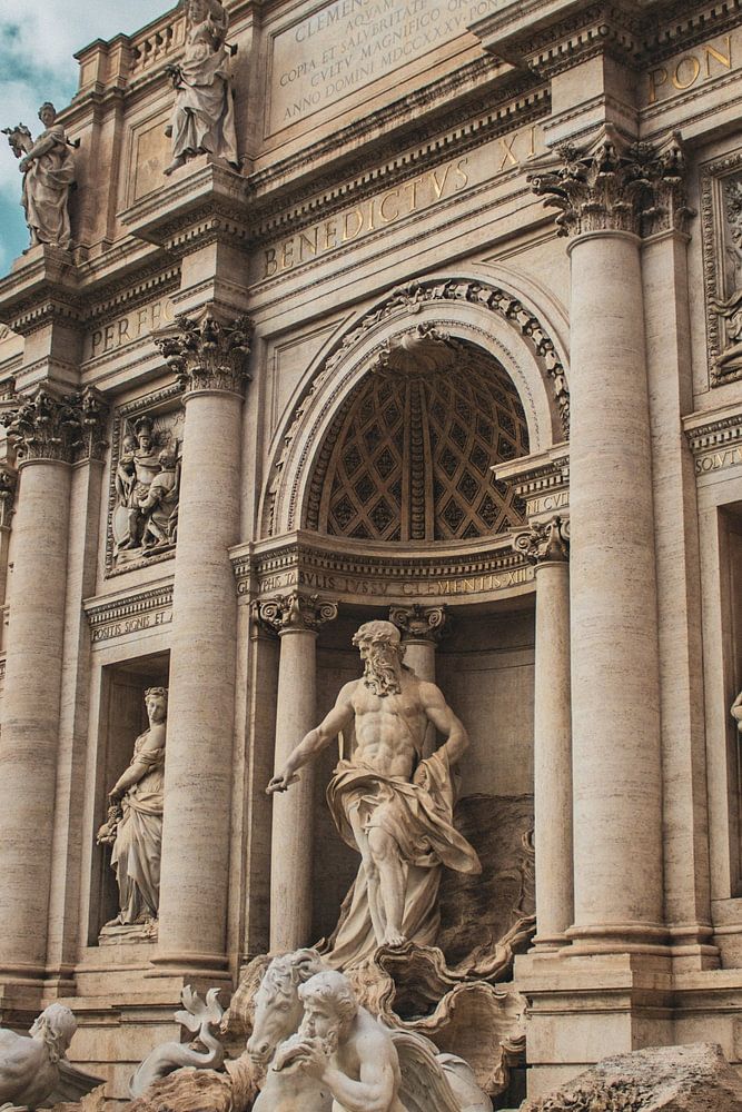 This work of art we see is the Trevi Fountain. This is made of white marble in which it is customary to throw in a coin with the right hand over the left shoulder. This, of course, I did.