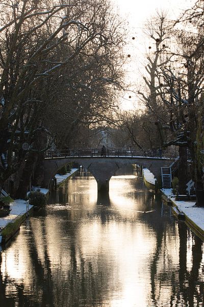 The Weesbrug in Utrecht in winter backlight (standing). Photo taken by Utrecht photographer André Blom on Sunday 4 January 2026. A real winter morning with snow! Photo taken from the Hamburger Bridge over the Oudegracht canal.