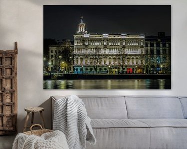 This image of the Wereldmuseum at night showcases the unique beauty of Rotterdam, where modern architecture and historic buildings harmoniously come together. It is a favorite spot to capture the city and create something beautiful to hang on the wall.